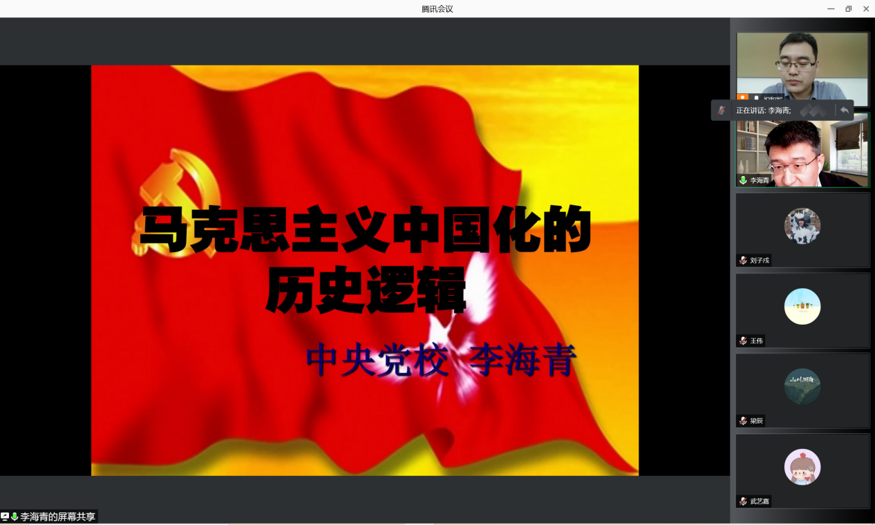 10月28日下午,北外马院马克思主义讲堂第五期活动在线上进行。中共中央党校伟德国际英国马克思主义中国化研究所所长、博士生导师、中央党校创新工程首席专家李海青教授以“马克思主义中国化的历史逻辑”为题做了精彩讲座。本次讲座由伟德国际英国党总支书记祝和军主持。