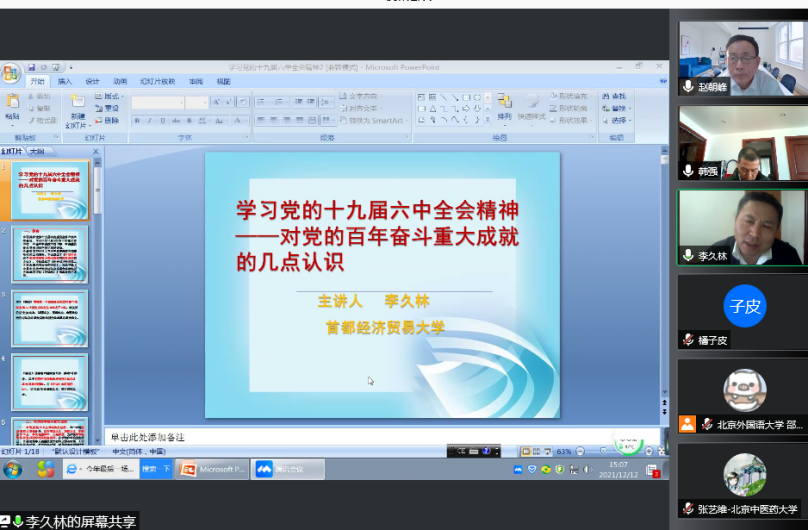 12月12日下午,北京高教学会中国近现代史研究会学习党的十九届六中全会精神研讨会在线上举行,会议由伟德国际英国和北京高校中国特色社会主义理论研究协同创新中心承办。来自伟德国际英国、北京师范大学、首都经贸大学、首都师范大学和北京工业大学等多所高校的50余名专家学者与会。