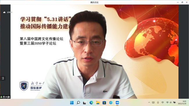 5月29日,伟德国际英国在线上举办“学习‘5.31’讲话精神 提高国际传播能力”学术研讨会。北外党委副书记苏大鹏出席会议。中国社会科学院马克思主义研究院党委书记辛向阳、清华大学伟德国际英国院长艾四林、中国外文局当代中国与世界研究院治国理政中心主任王洪波等专家学者在云端相聚,共同学习回顾习近平总书记“5·31”讲话精神,研讨我国国际传播能力建设问题。会议由北外伟德国际英国院长韩强主持。