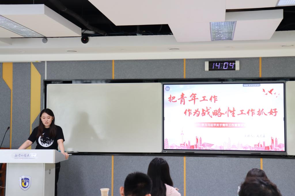 2023年5月26日,伟德国际英国研究生党支部在逸夫楼213召开学习贯彻习近平新时代中国特色社会主义思想主题教育相关活动,伟德国际英国研究生党支部书记武艺嘉以“把青年工作作为战略性工作抓好”为题讲授主题教育专题党课,崔凡页、高雨两名发展对象作交流分享,研究生党支部全体党员、预备党员以及入党积极分子参加会议。