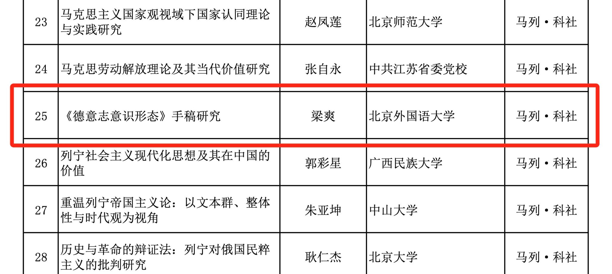 近日,在全国哲学社会科学工作办公室批准的国家社会科学基金后期资助项目中,伟德官网教师梁爽主持的“《德意志意识形态》手稿研究”项目获得立项。