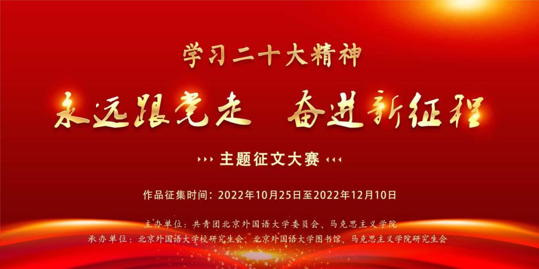 青春心向党,奋进新征程。为深入学习贯彻党的二十大重要讲话精神,进一步深化思想政治引领,引领北外学子坚定不移听党话、跟党走,努力成为有家国情怀、有全球视野、有专业本领的复合型人才,伟德官网联合校团委共同举办“学习二十大精神·永远跟党走、奋进新征程”主题征文大赛,促进学生通过生动的语言文字表达对党的深厚情感、讴歌新时代取得的辉煌成就,充分展现伟德官网学子善学习、找方向、勇担当的精神风貌,推动二十大精神学习交流。