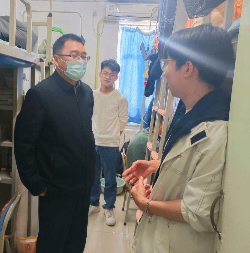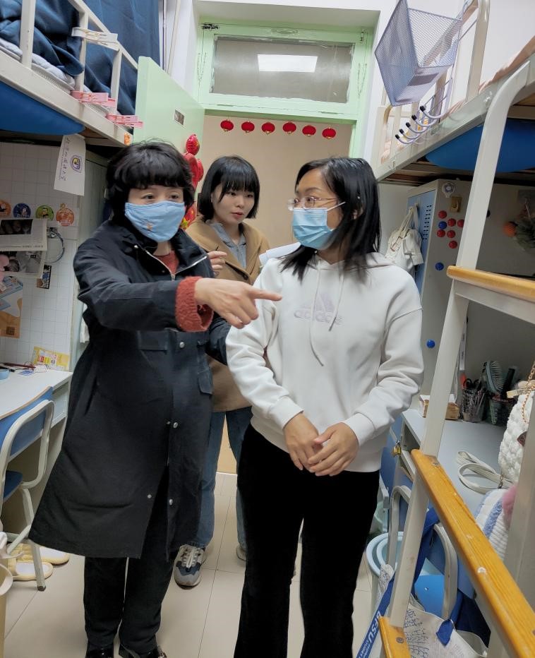近日,为加强宿舍安全管理,排查宿舍安全隐患,营造良好的学习生活环境,伟德国际英国党总支书记祝和军老师、学生辅导员刘珊珊老师、办公室孟蔓老师带队深入学生宿舍走访慰问,了解学生宿舍基础设施、环境卫生、消防安全情况,并与同学们亲切交流。