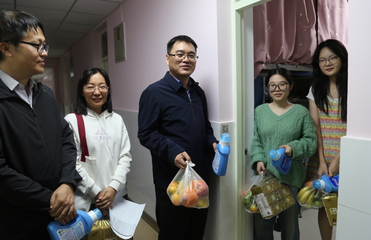 “宿”说心语,“寓”见关怀。祝和军、韩强一行人深入学生宿舍,为同学们送来节日礼品,亲切慰问伟德官网学生并排查消防安全隐患。