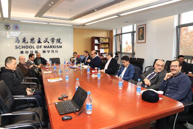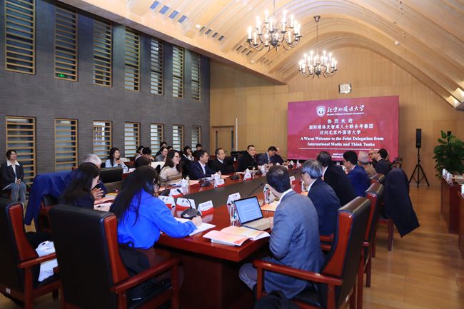 贾德忠热烈欢迎考察团一行来访,并对中联部提供的宝贵交流机会表示感谢。他简要介绍了北外的办学历史和学科发展成就,重点介绍了北外在马克思主义研究、世界政党研究、区域国别研究等领域的研究成果。他表示,北外基于语言优势、立足学科特色开展世界政党研究,尤其关注广大发展中国家的共产党和左翼政党,并期待与考察团代表的政党和研究机构加强学术交流。