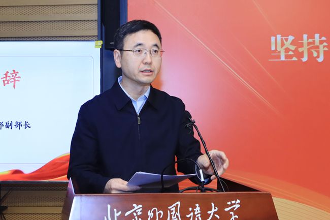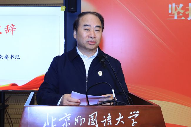 王定华在致辞中指出,会议主题高度契合习近平总书记提出的“两个结合”的重要思想和为北外老教授们的重要回信精神,与北外担负的把世界介绍给中国、把中国介绍给世界的使命完全一致。我们期待会议能够围绕坚持“两个结合”推进马克思主义中国化时代化展示最新研究成果,在当代中国马克思主义体系化学理化研究论坛和青年学者论坛中讨论更加深入,认识更加深化,启迪更加深远,为新时代中国特色社会主义哲学社会科学自主知识体系的创建贡献更多的智慧和力量。