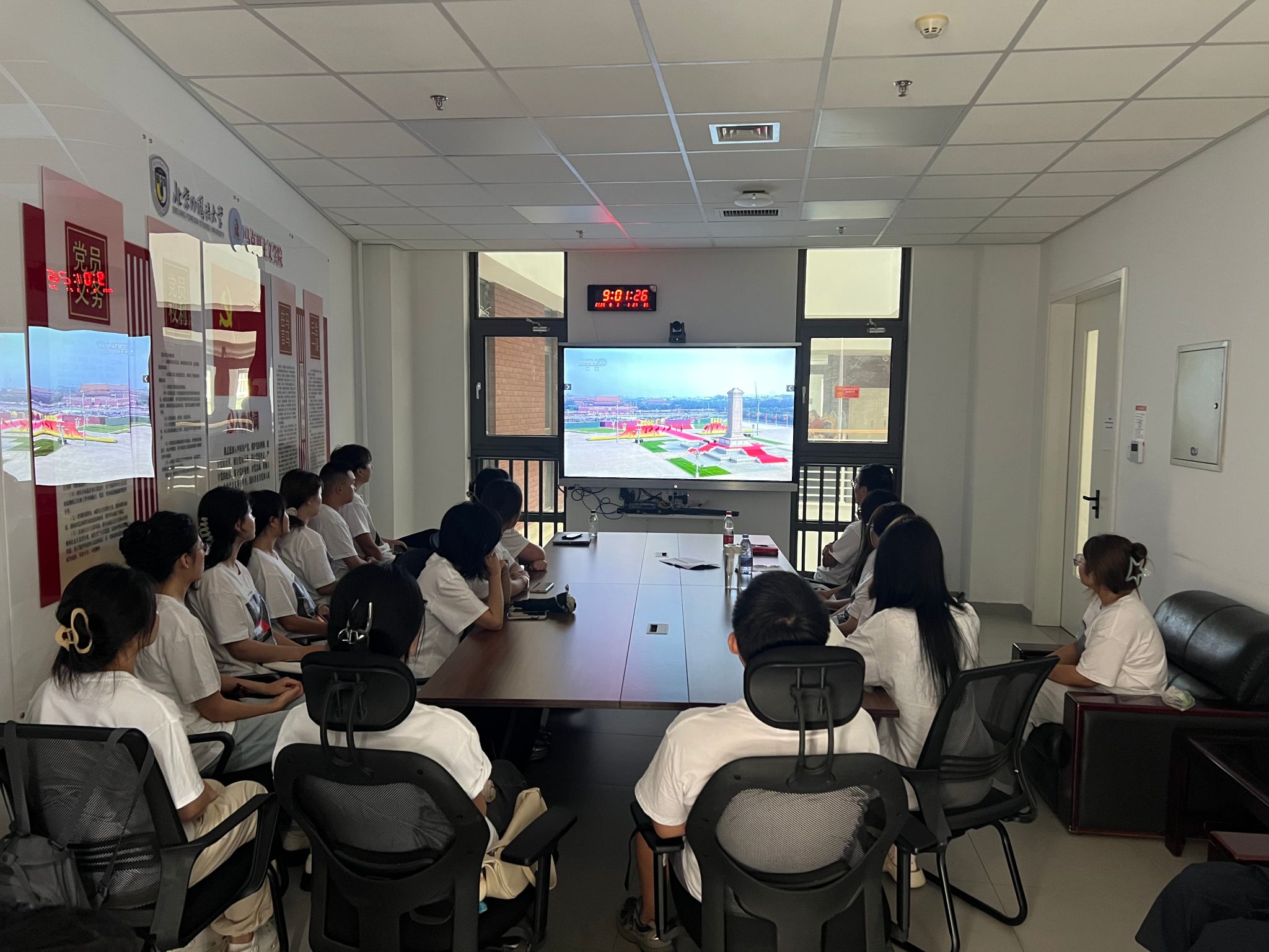 伟德国际英国党总支组织全体师生集体观看纪念中国人民抗日战争暨世界反法西斯战争胜利80周年大会