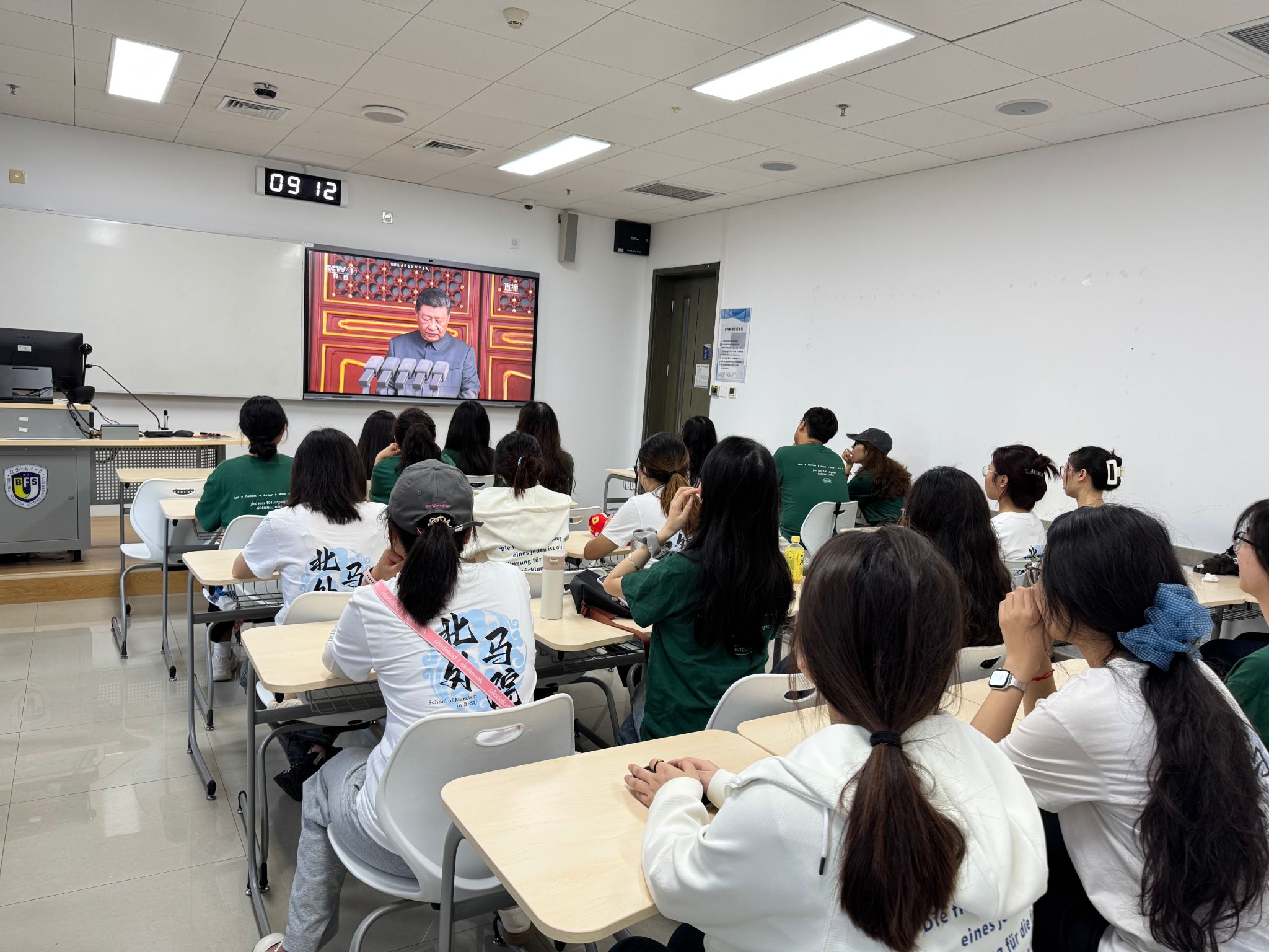 为进一步引导广大师生铭记历史、缅怀先烈,共鉴胜利荣光,凝聚奋进力量,93日上午,马院组织全体师生收看纪念中国人民抗日战争暨世界反法西斯战争胜利80周年大会直播,学院全体教师和学生分别在学院会议室、党员活动室、教室集中收看大会盛况。