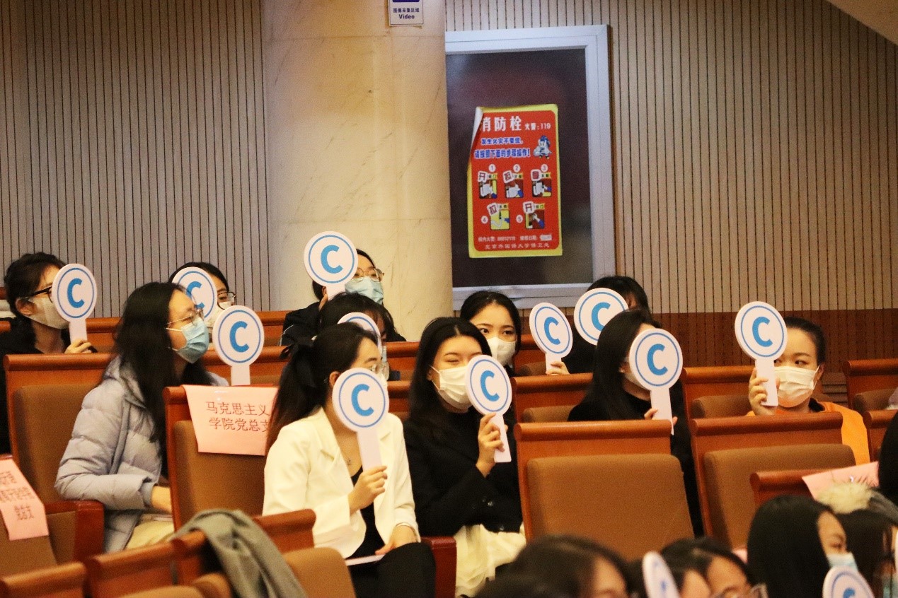 学生党员、亲友团成员刘玉红认为:“我们通过屏幕PPT上显示的题目与选手一起思考、同时答题,使我体会到极大的参与感,不仅再一次加深了我对党的二十大精神的学习和领悟,也加深了我对马院和同学们的热爱。每个人的答案决定着最后的得分,这使我丝毫不敢懈怠,通过几轮角逐,最终马院以第一名的成绩成功晋级决赛,我感到无比激动和自豪!想必决赛更加精彩,希望马院再接再厉,再获荣光!”