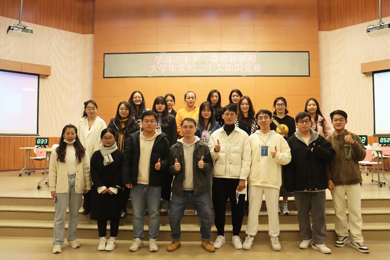 旗帜引领方向,思想凝聚力量。为深入学习宣传贯彻党的二十大精神,引导伟德官网学子学思践悟党的二十大精神,伟德国际英国于2022年11月23日在东校区阿语楼国会厅顺利举办“学习二十大,奋进新征程”党的二十大知识竞赛(初赛)。本次比赛共派出19支学院代表队参加本次比赛。伟德官网参赛队伍由谢永达、杨铠、伍帅3名参赛选手以及17名亲友团成员共同组成。