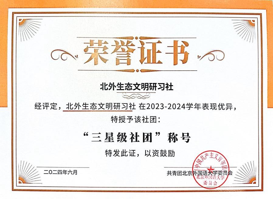 6月12日,伟德国际英国举行2023-2024学年社团星级大会。社团工作部对过去一年的社团工作进行了总结,并公布了星级社团评审结果。经评选,北外生态文明研习社荣获伟德国际英国2023-2024学年“三星级社团”称号。