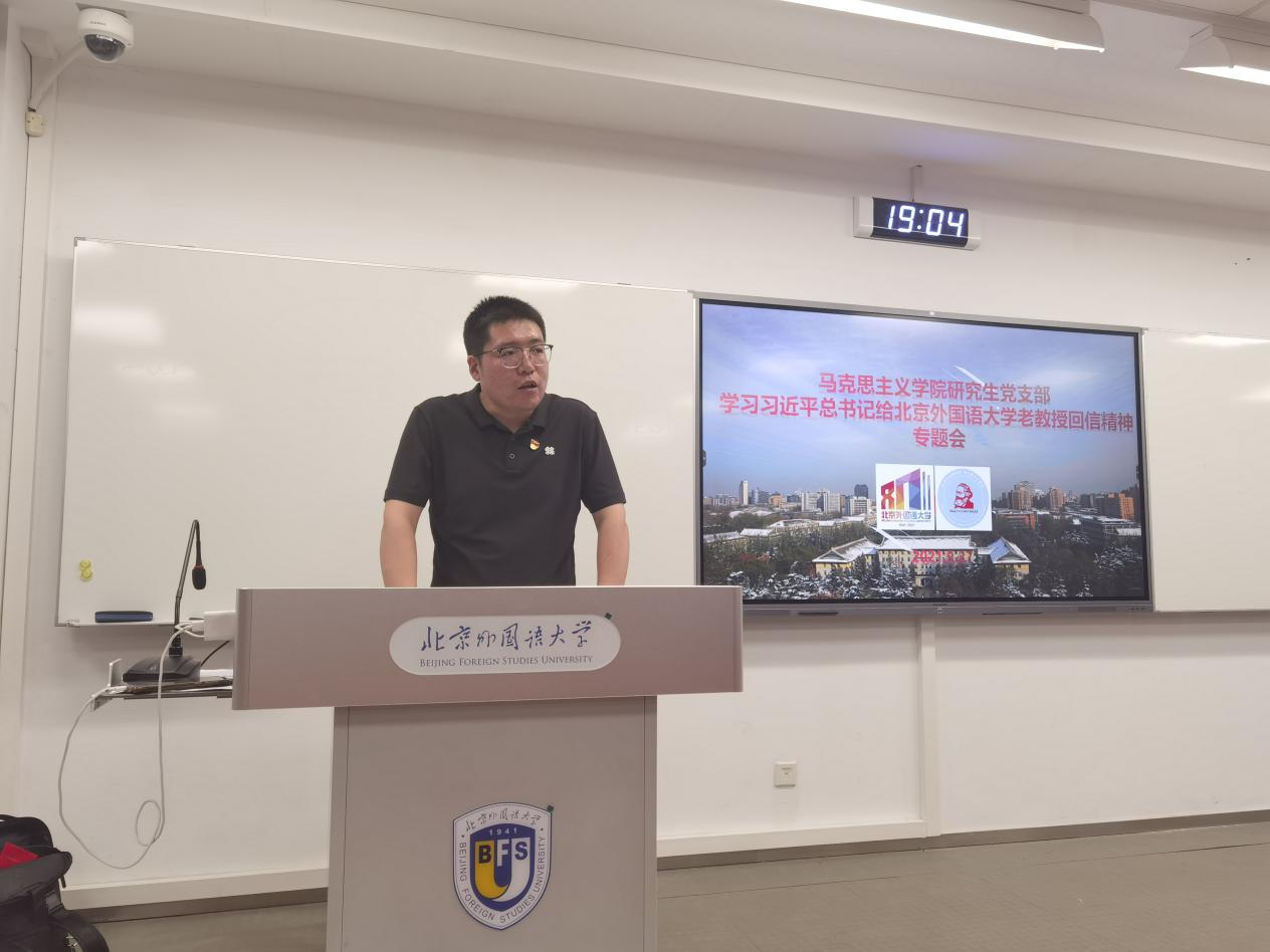 习近平总书记的亲切回信令全体马院师生备受鼓舞,掀起了一轮学习回信精神的热潮。近日,在学校党委的号召与学院党总支的部署下,伟德国际英国研究生党支部在逸夫楼615教室召开专题学习会,集中学习习近平总书记给北外老教授的回信精神。伟德国际英国全体研究生参加学习。学习会由支部书记冯高洋主持。