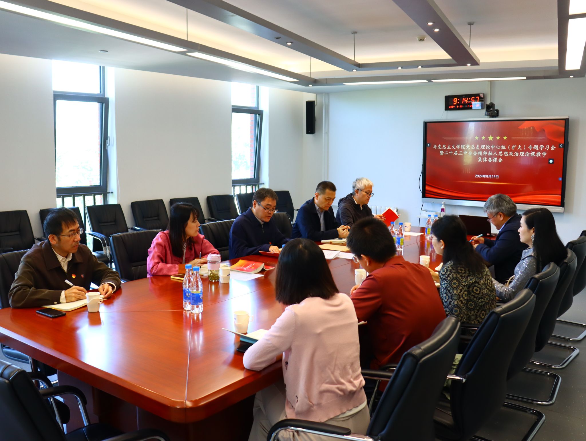 院长、党总支副书记韩强对党的二十届三中全会精神全面融入思政课教学的相关工作进行了部署。韩强表示,将党的二十届三中全会精神融入思政课教学具有重要的意义。将党的二十届三中全会精神和报告内容融入思政课中,与教师们的专业有机融合,将其作为教学和科研工作的重点,引导学生感悟党的创新理论的实践伟力,可以体现出取得良好的教学效果。