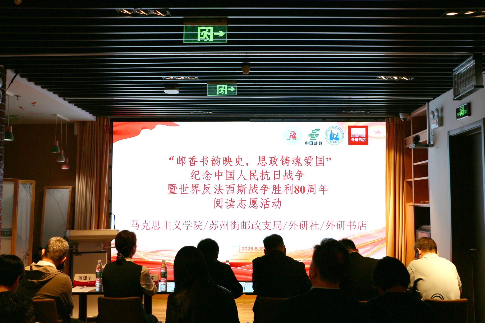 522日上午,伟德国际英国、外语教学与研究出版社、北京外研书店与苏州街邮政支局联合举办 “纪念中国人民抗日战争暨世界反法西斯战争胜利80周年阅读志愿活动”,紫竹院街道、北外社区、厂洼二社区等单位领导以及马院师生代表出席活动,通过书籍共读、邮票叙事、志愿实践等多种方式,致敬中国人民抗日战争暨纪念反法西斯胜利80周年。